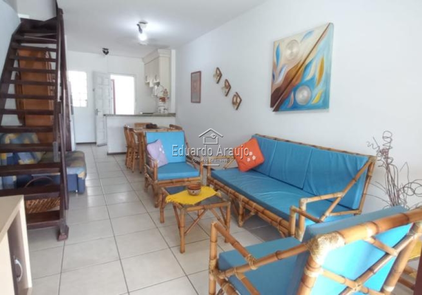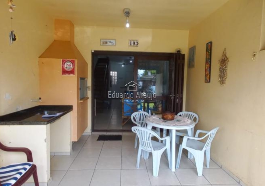 Sobrado de 02 dormitórios, sala de estar, cozinha conjugada, churrasqueira, 02 banheiros sociais, sacada, lavanderia, fica semi mobiliado, vaga descoberta para carro. Excelente localização, a 300 metros do mar, próximo de mercado, farmácia, e todos os recursos.