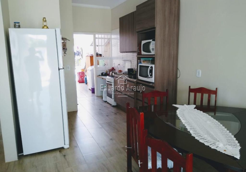 O imóvel conta com 03 dormitórios, sendo 01 suíte, banheiro social, sala de estar com cozinha integrada, área de serviço, churrasqueira e garagem coberta. Possui piso frio e esquadrias em madeira, garantindo um ótimo padrão de acabamento.