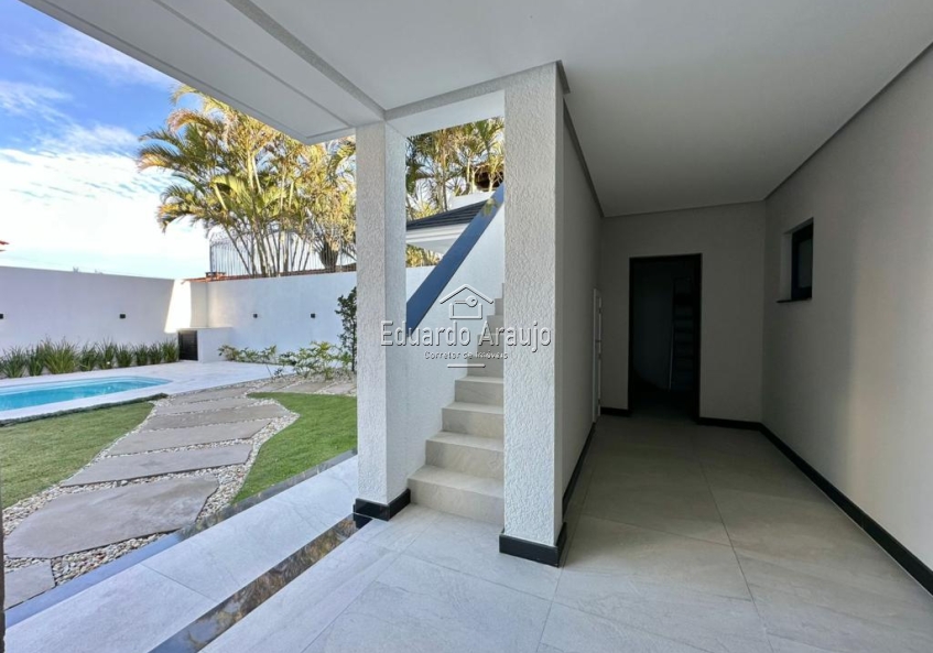 Sobrado com 460 M², 5 suítes, sendo 1 suíte master, 2 lavabos, living amplo, ambientes integrados, sala de cinema, jardim, deck, espaço gourmet, piscina, lavanderia, depósito, pátio amplo, garagem para 2 carros.