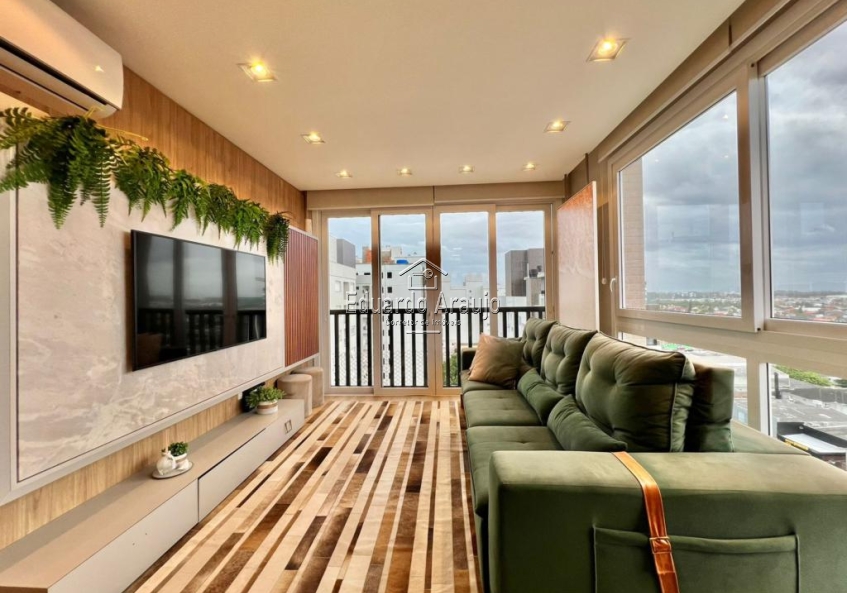 APARTAMENTO DE ALTO PADRÃO COM 3 DORMITÓRIOS, SENDO 1 SUÍTE, LAVABO, BANHEIRO SOCIAL, AMPLO LIVING COM ILUMINAÇÃO EM LED, CHURRASQUEIRA, LAVANDERIA, CLIMATIZADO, FICA MOBILIADO E DECORADO.
