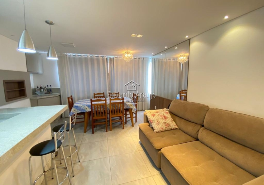 APARTAMENTO A 160 METROS DO MAR, 2 DORMITÓRIOS, SENDO 1 SUÍTE, BANHEIRO SOCIAL, AMBIENTES INTEGRADOS, CHURRASQUEIRA, ÁREA DE SERVIÇO, FICA MOBILIADO E CLIMATIZADO, POSSUI 1 BOX.