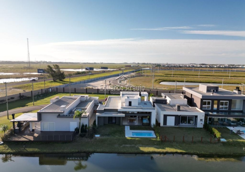 CASA BEIRA LAGO COM 4 SUÍTES, LAVABO, LIVING INTEGRADO, LAREIRA, CHURRASQUEIRA, LAVANDERIA, PERSIANAS AUTOMATIZADAS, PISCINA, FICA MOBILIADA E DECORADA.