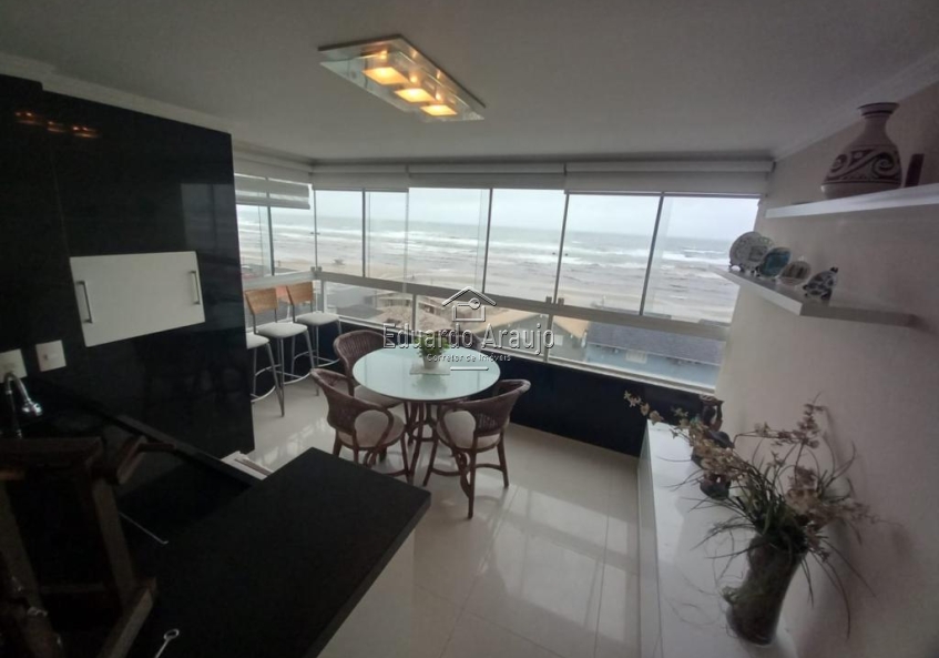 APARTAMENTO A POUCOS METROS DO MAR COM 4 DORMITÓRIOS, SENDO 2 SUÍTES, BANHEIRO SOCIAL, LAVABO, AMBIENTES INTEGRADOS, ÁREA DE SERVIÇO, DEPENDÊNCIA DE EMPREGADA, SACADA COM CHURRASQUEIRA, FICA MOBILIADA E DECORADA, POSSUI REBAIXO EM GESSO COM LUZ DE LED, GÁS CENTRAL E ÁGUA QUENTE, POSSUI 3 BOXES.