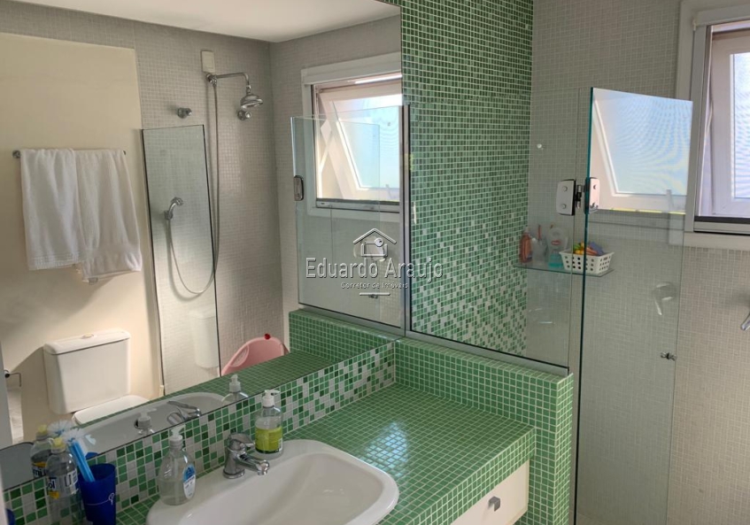 SOBRADO BEIRA LAGO COM 5 SUÍTES COM CLOSET, LAVABO, SALA DE ESTAR E JANTAR INTEGRADOS, COZINHA, ÁREA DE SERVIÇO, ÁREA GOURMET, DEPENDÊNCIA DE EMPREGADA COM BANHEIRO, PISCINA COM AQUECIMENTO SOLAR, PAISAGISMO, IRRIGAÇÃO, FICA MOBILIADA, VAGA COBERTA PARA 2 CARROS.