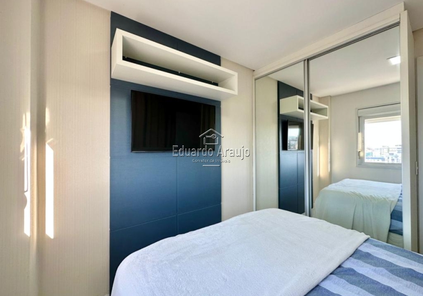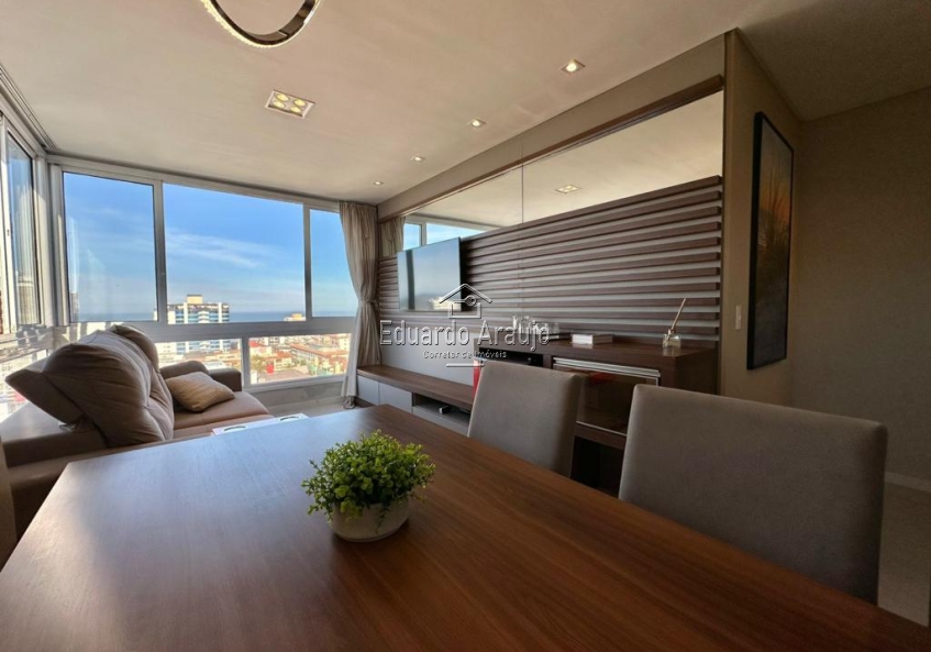 APARTAMENTO A 400 METROS DO MAR E PRÓXIMO AO COMÉRCIO COM 2 DORMITÓRIOS, SENDO 1 SUÍTE, BANHEIRO SOCIAL, AMBIENTES INTEGRADOS, CHURRASQUEIRA, ÁREA DE SERVIÇO, SACADA DE FRENTE, VISTA PARA O MAR, EXCELENTE ILUMINAÇÃO, FICA MOBILIADO E DECORADO, POSSUI 1 BOX DUPLO.