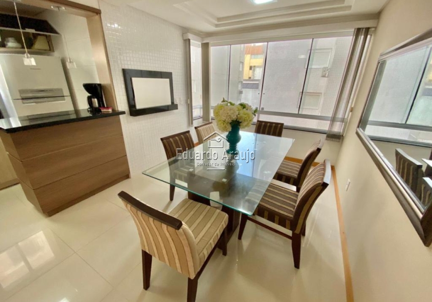 APARTAMENTO A 2 QUADRAS DO MAR COM 2 DORMITÓRIOS, SENDO 1 SUÍTE, SALA DE ESTAR E JANTAR INTEGRADAS, COZINHA, CHURRASQUEIRA, ÁREA DE SERVIÇO, POSSUI 1 BOX.
