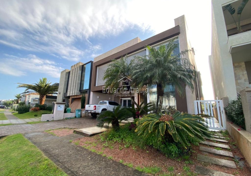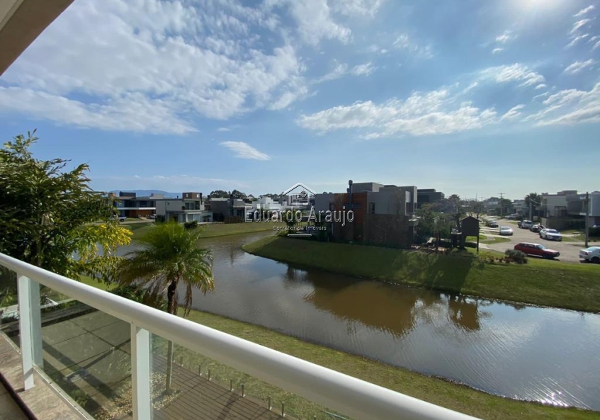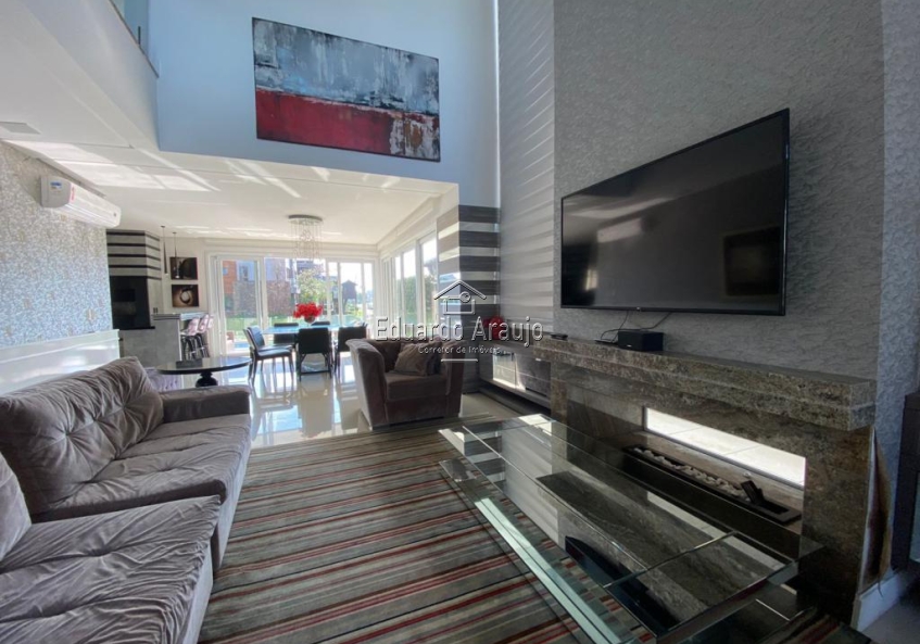 SOBRADO BEIRA LAGO COM 4 SUÍTES, SENDO 1 SUÍTE MASTER COM CLOSET, CUBA DUPLA E BANHEIRA, LAVABO, AMBIENTES INTEGRADOS, LAREIRA, CHURRASQUEIRA, ÁREA DE SERVIÇO AMPLA, PISO AQUECIDO, PISCINA, VAGA PARA 2 CARROS.