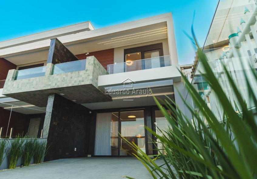Sobrado com 3 suítes, lavabo, ambientes integrados, churrasqueira, finamente decorada e mobiliada, vaga para 1 carro, piscina suspensa frente mar, acabamentos modernos, tecnologia integrada, escadas com padrão diferenciado, energia fotovoltaica e carregamento de carros elétricos, pias esculpidas no mármore, aberturas internas de alto padrão, isolamento acústico e porcelanato em grandes dimensões, iluminação automatizada e automação com alexa, segurança e monitoramento completo.