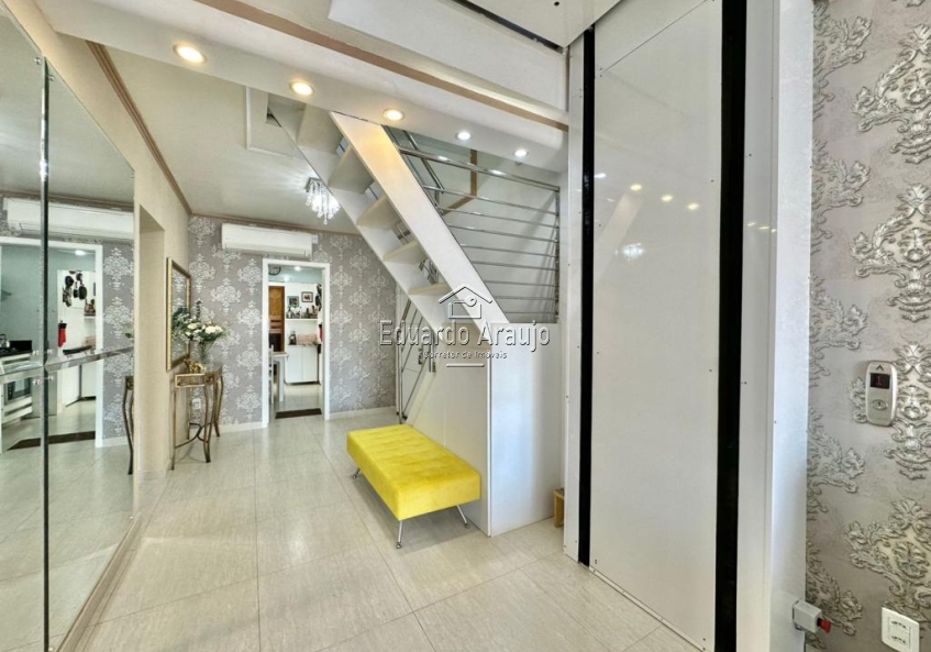 Cobertura duplex com 173 M², 2 dormitórios, sendo 1 suíte, dependência de empregada com banheiro completo, 2 Banheiros sociais, elevador privativo, terraço, fica mobiliado, decorado e climatizado, espaço gourmet no andar superior, 2 churrasqueiras, 1 box duplo e 1 box simples.