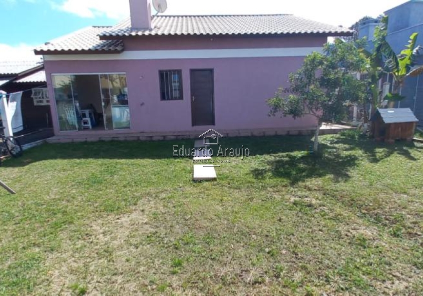 CASA A 500 METROS DO MAR COM 3 DORMITÓRIOS, BANHEIRO SOCIAL, AMBIENTES INTEGRADOS, CHURRASQUEIRA, ÁREA DE SERVIÇO, PÁTIO AMPLO DOS FUNDOS, GARAGEM COBERTA PARA 2 CARROS.