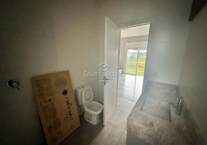CASA TÉRREA BEIRA LAGO COM 4 SUÍTES, LAVABO, AMBIENTES INTEGRADOS, LAREIRA, CHURRASQUEIRA, ÁREA DE SERVIÇO, MOBILIAS FIXAS, ESQUADRIAS EM PVC AUTOMATIZADAS, VAGA PARA 2 CARROS.