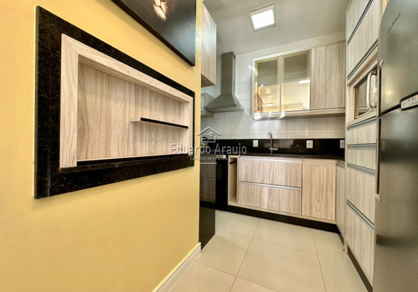 Apartamento com vista para a praça de 2 dormitórios, sendo 1 suíte, banheiro social, ambientes integrados, churrasqueira, área de serviço, sacada de frente, split nos dormitórios e na sala, possui 1 box térreo.