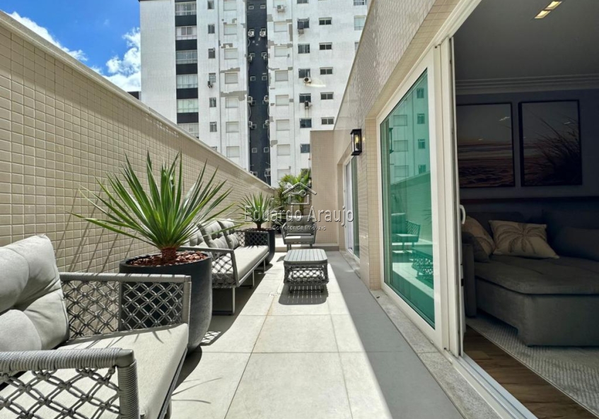 Apartamento a 2quadras do mar com terraço lateral e 4 suítes, sendo uma suíte master e outra em formato de escritório home office, lavabo, ambientes integrados, churrasqueira, área de serviço, finamente decorado e mobiliado, possui 4 boxes, sendo 2 dentro do edifício e 2 ao lado do prédio. Edifício com infraestrutura.