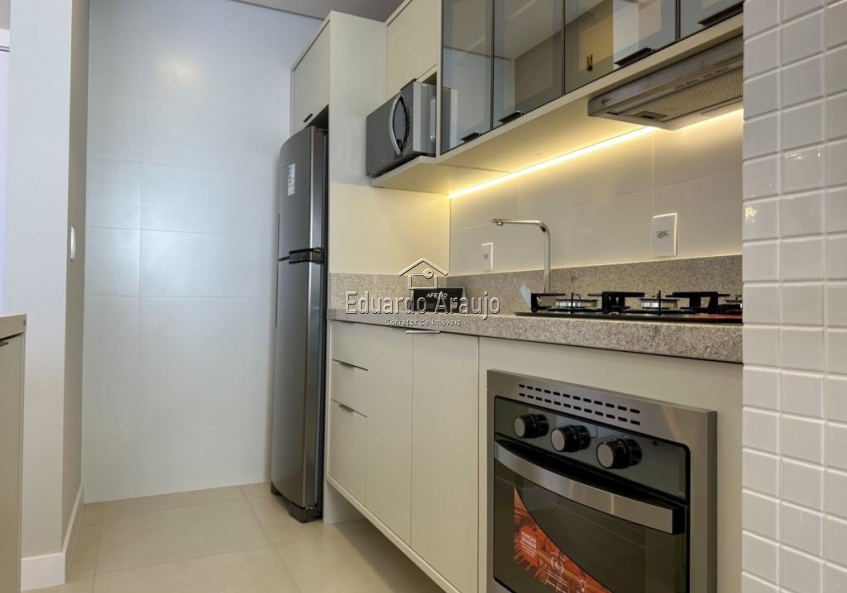 Apartamento de 2 dormitórios, sendo 1 suíte, banheiro social, ambientes integrados, churrasqueira, área de serviço, fica mobiliado e decorado, possui 1 box.