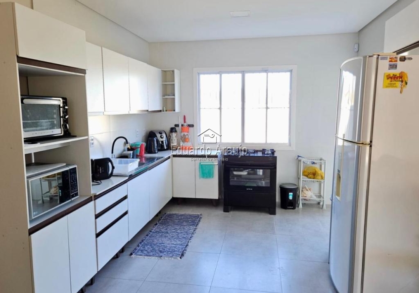 Com design contemporâneo, a casa tem piso térreo e se destaca por suas características modernas como jardim, churrasqueira e gramado, além de ser completamente acessível a cadeiras de rodas, possui uma cozinha grande e equipada com armários, área de serviço