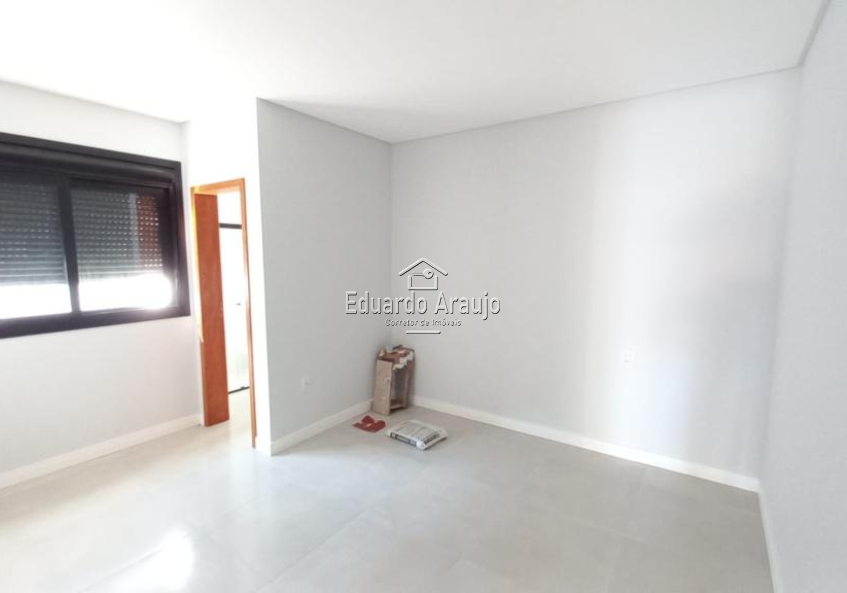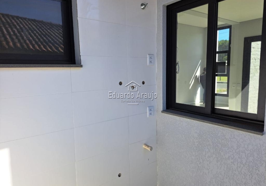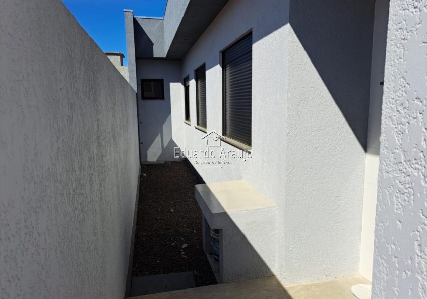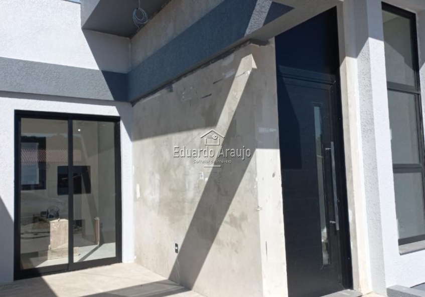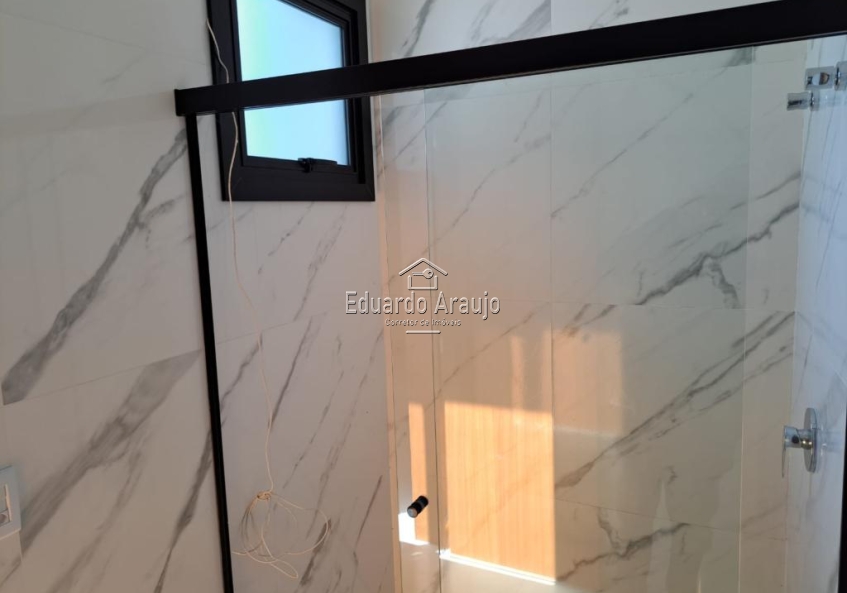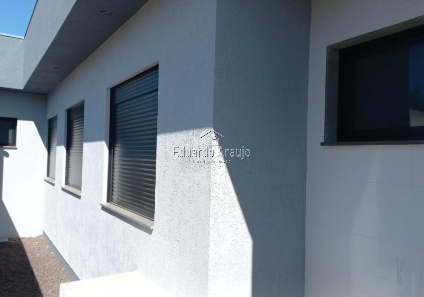 A construção é de alto padrão, com acabamentos em porcelanato polido e esquadrias em alumínio preto, além de sistema de água quente e fria, gás central, e espera para ar-condicionado split e alarme. O exterior da propriedade conta com piscina e chuveiro externo, perfeito para aproveitar os dias ensolarados.