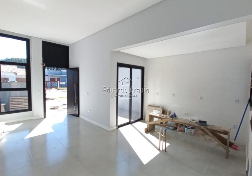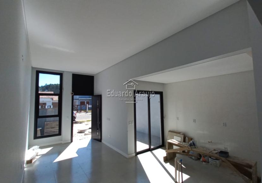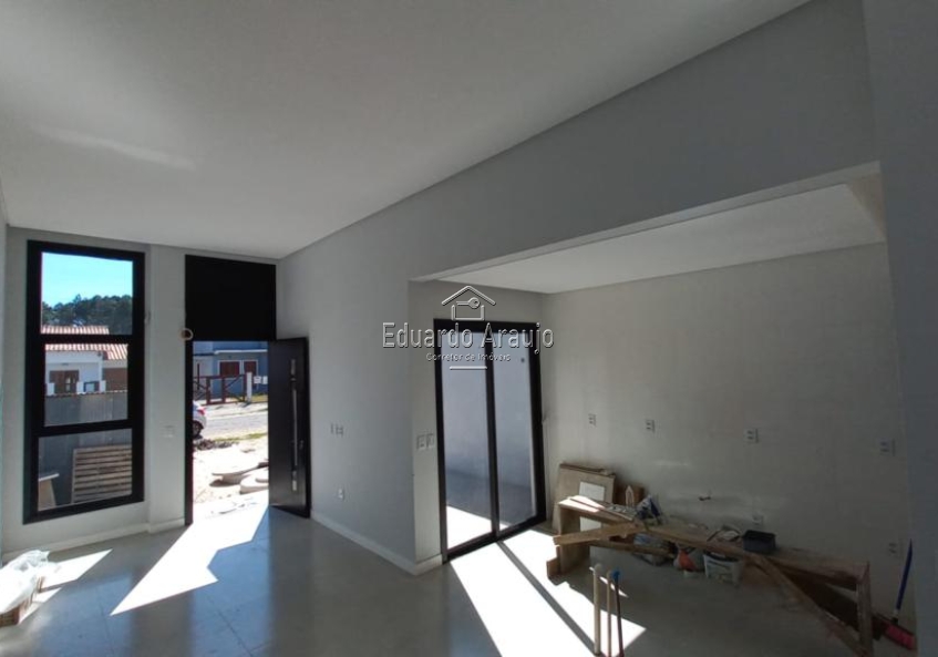 Apresentamos esta magnífica casa que conta com 3 dormitórios, sendo uma suíte, e um banheiro social. A cozinha americana, equipada com churrasqueira, integra-se à sala de estar e jantar, com pé direito duplo que proporciona uma sensação de amplitude.