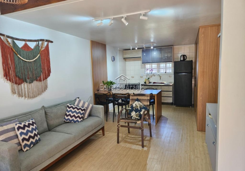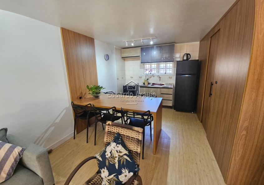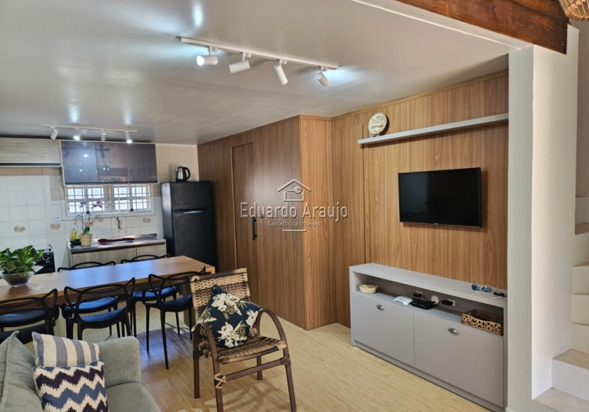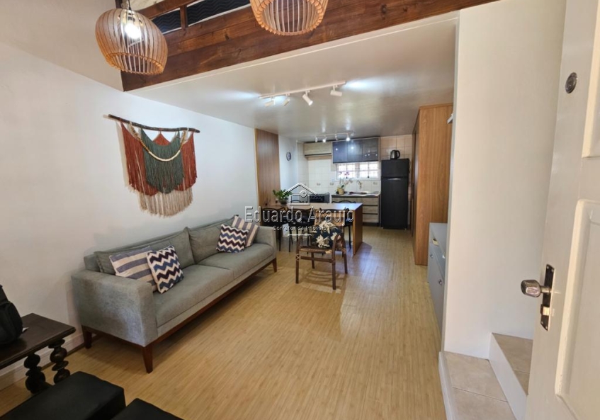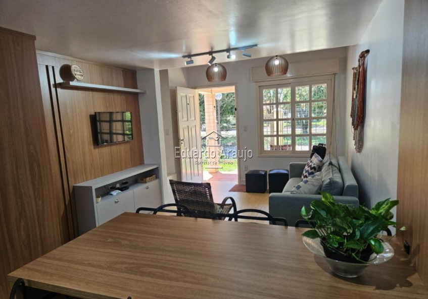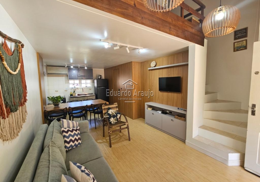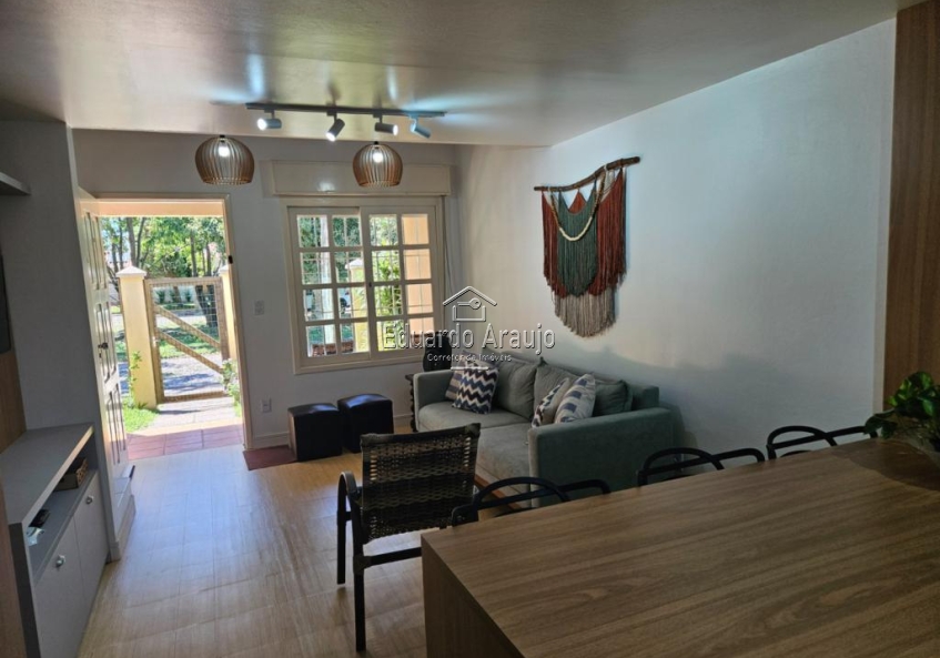 Casa com 1 dormitório e outro no mezanino na parte superior, banheiro social, amplo living com cozinha integrada, box coberto para o carro, totalmente mobiliado e decorado, posição solar frente Leste (melhor posição solar). Condomínio completo: Com 2 piscinas, salão de festas/jogos, cancha de esportes, monitoramento por câmeras 24 hrs e zelador o ano todo. Ótima localização. Venha conhecer mais essa oferta aqui conosco!!!