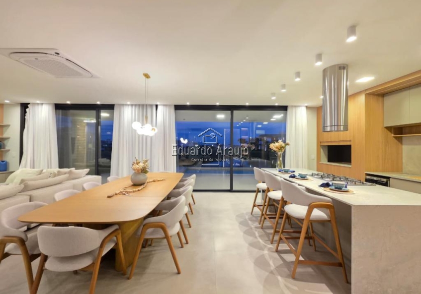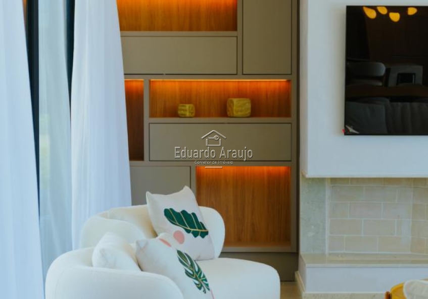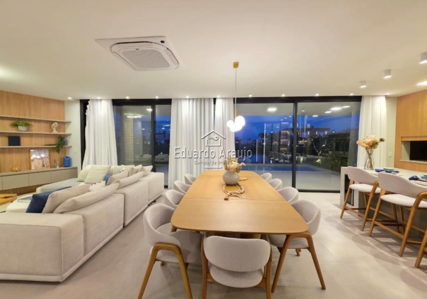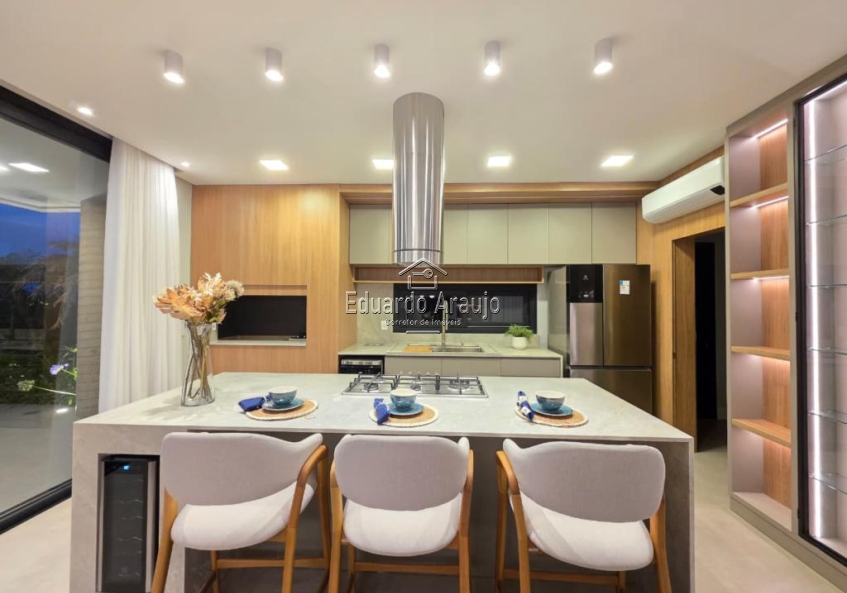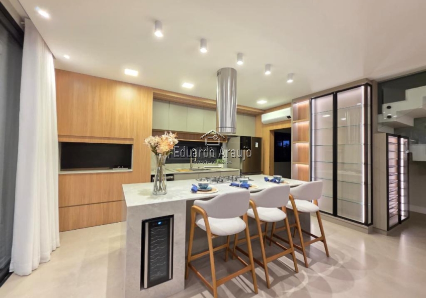O imóvel dispõe de 5 suítes, amplo living em três ambientes com lareira, cozinha americana integrada ao espaço social, churrasqueira, lavabo, área de serviço e varanda. Conta ainda com pátio amplo, vagas para veículos e paisagismo cuidadosamente planejado, valorizando ainda mais o projeto arquitetônico.
