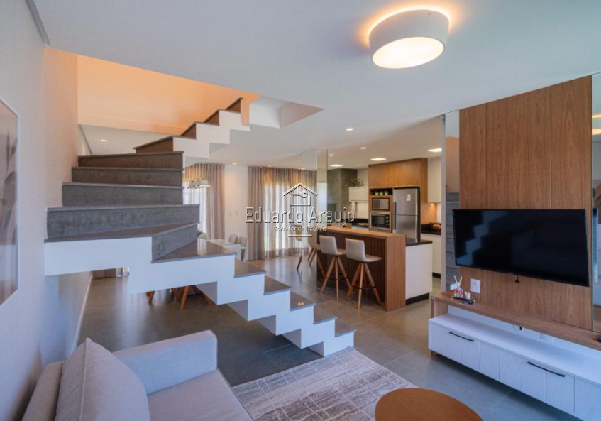 Sobrado geminado de 03 dormitórios, sala de estar, sala de jantar, cozinha integrada com churrasqueira, lavanderia, banheiro social, sacada, todo mobiliado e decorado, imóvel de alto padrão construtivo. Excelente localização, na beira mar.